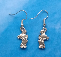 Tibetan silver Teddy Bear holding flower earrings.
