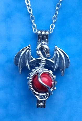 Silver colour Dragon pendant with gemstone available from the following list: