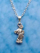 Tibetan silver Teddy Bear holding flower pendant.